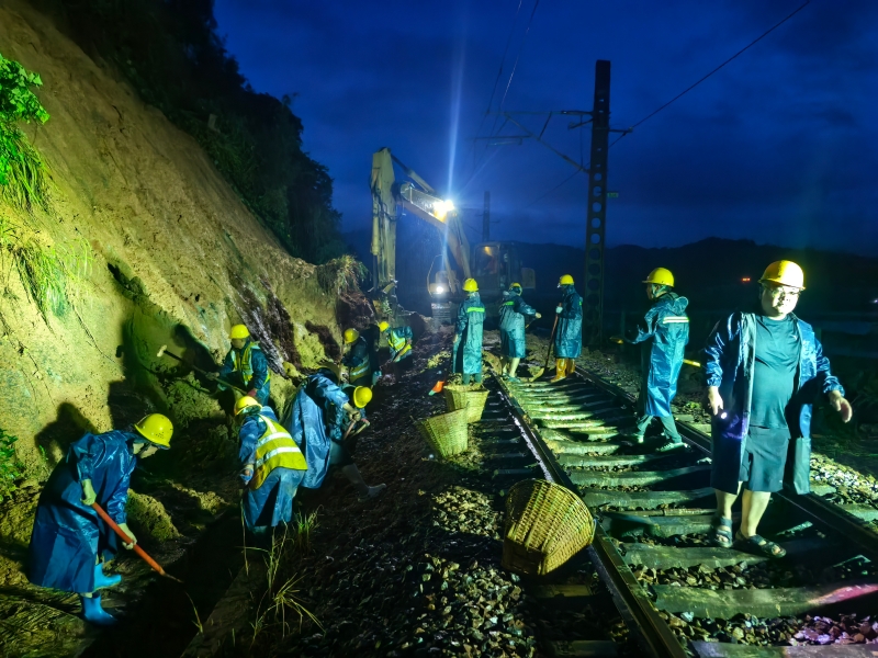 7月21日,福建省福州市連江縣遭遇持續(xù)強降雨侵襲。晚上21時,一陣急促的電話鈴聲在福州港后鐵路項目響起:官坂鎮(zhèn)可門港鐵路支線發(fā)生邊坡滑塌險情,南昌鐵路局福州工務段透堡車間請求火速支援搶險!