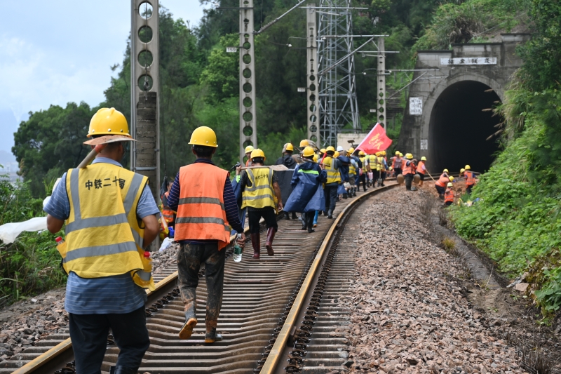 高強度的連夜作業(yè)消耗著隊員們的體力,為確保進度不緩,搶險不停,第二天早上6:00,項目黨支部迅速協(xié)調增援20余名工人星夜馳援,火速接替,實現(xiàn)了搶險力量的無縫接力。經(jīng)過20個小時的連續(xù)奮戰(zhàn),坍塌物終于被徹底清除,線路障礙成功排除,為鐵路運行提供了安全保障。