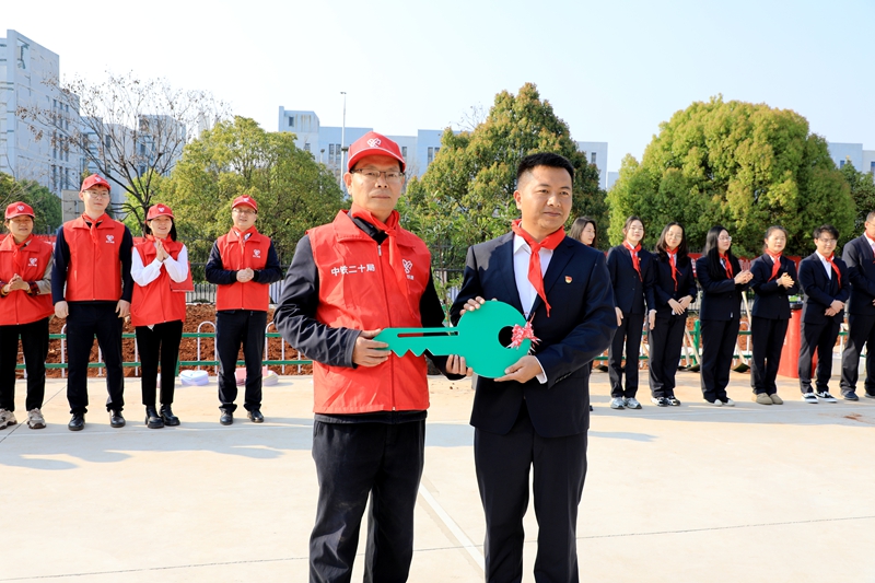圖為校企雙方移交“綠色鑰匙”(王慧伶 攝)